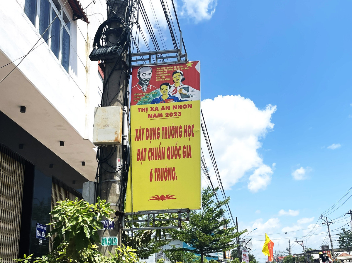 Trong đó, đặc biệt nhất phải kể đến câu khẩu hiệu gây "rối não" người đọc: “Thị xã An Nhơn năm 2023, xây dựng trường học đạt chuẩn Quốc gia 6 trường”.