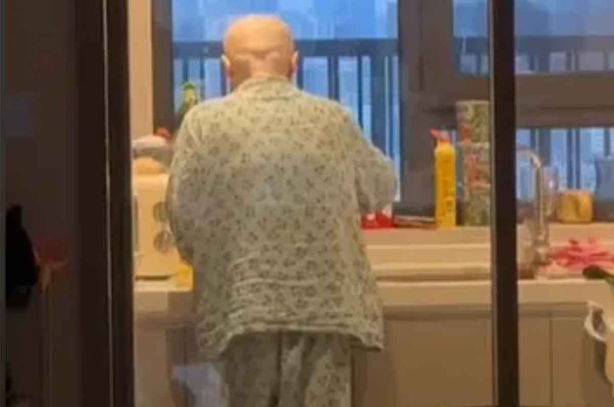 Khi video được quay, người con trai đang ở trong phòng khách. Anh không kìm được nước mắt khi chứng kiến cảnh mẹ nấu bữa ăn cuối cùng. “Sau khi nấu ăn xong, bà ấy rất khó thở và đã nghỉ một thời gian dài”.