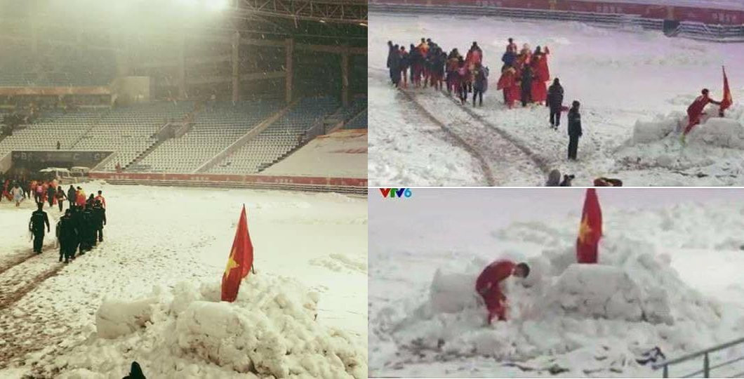 Sau khi trận chung kết U23 châu Á 2018 giữa U23 Việt Nam và U23 Uzbekistan khép lại, trung vệ Đỗ Duy Mạnh leo lên một đụn tuyết, cắm lá cờ Tổ quốc, rồi cúi đầu chào Quốc kỳ linh thiêng.