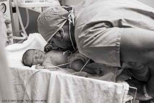 Nhiếp ảnh gia Krista Evans đã dành thời gian của mình để chụp lại khoảng khắc chào đời của hơn 50 đứa trẻ. Trong đó, những bức ảnh ghi lại giây phút “falling in love”, lần đầu tiên người cha gặp gỡ con mình sau 9 tháng 10 ngày đã khiến cô xúc động đến nghẹt thở. Vì không chỉ có mẹ, mà tình cha cũng rất ngọt ngào và ấm áp.