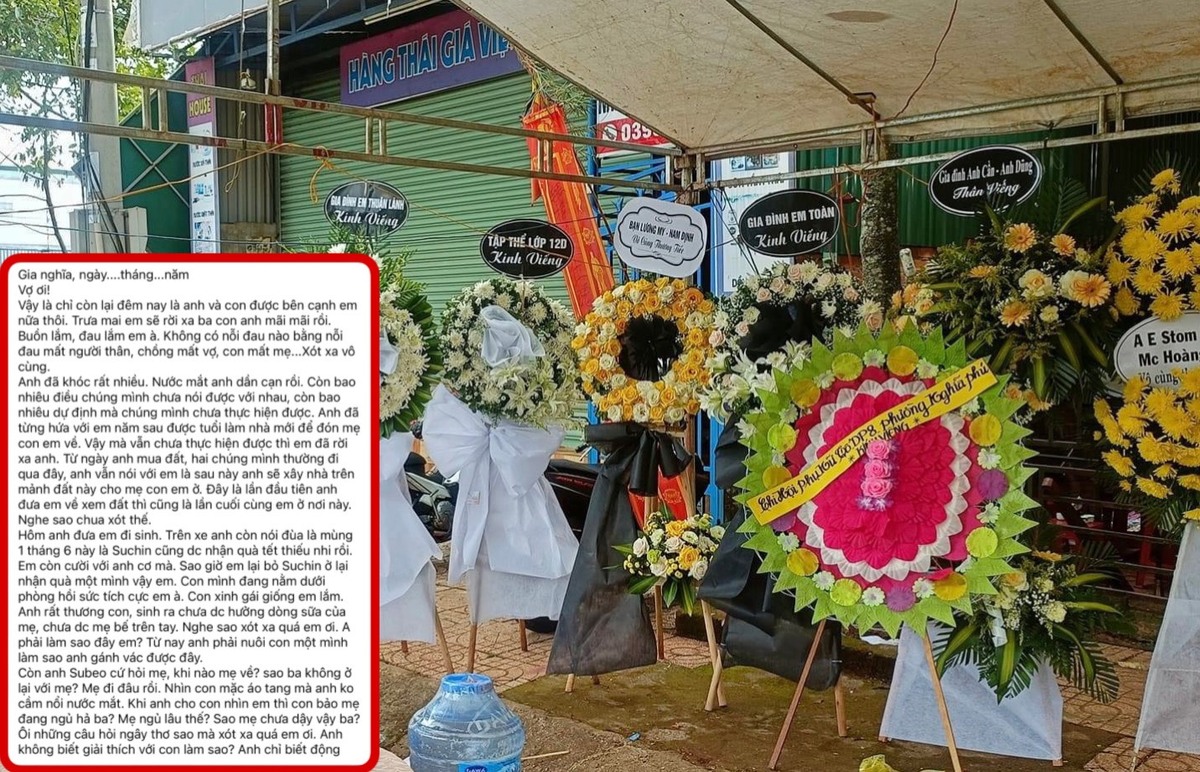 "Vợ ơi! Vậy là chỉ còn lại đêm nay là anh và con được bên cạnh em nữa thôi. Không có nỗi đau nào bằng nỗi đau mất người thân, chồng mất vợ, con mất mẹ... Xót xa vô cùng. Anh đã khóc rất nhiều. Nước mắt anh dần cạn rồi. Con mình đang nằm dưới phòng hồi sức tích cực em à. Con xinh gái giống em lắm. Anh rất thương con, sinh ra chưa được hưởng dòng sữa của mẹ, chưa được mẹ bế trên tay. Nghe sao xót xa quá em ơi. Anh phải làm sao đây em?. Còn Subeo cứ hỏi mẹ, khi nào mẹ về? Sao ba không ở lại với mẹ? Mẹ đi đâu rồi?. Nhìn con mặc áo tang mà anh không cầm nổi nước mắt.