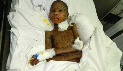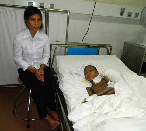 Tại BV đa khoa tỉnh Kon Tum, Y Nôn nhập viện trong tình trạng hết sức nguy kịch. Hơi thở thều thào, toàn thân bị tổn thương, bong da từng mảng dày, có chỗ hoại tử ăn sâu, thịt thối rữa. Sau hai ngày chăm sóc theo dõi, bé Y Nôn mới qua khỏi cơn nguy kịch.