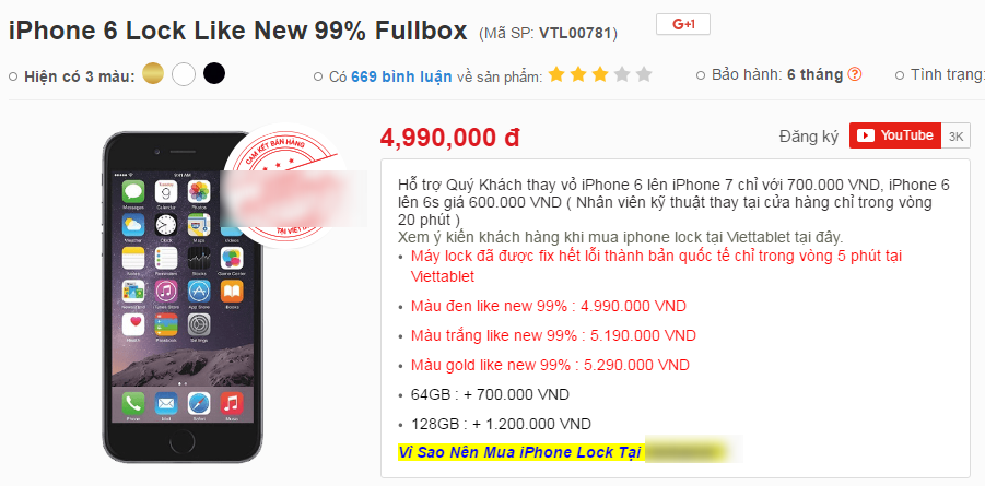 iPhone 6 lock xuống giá còn 5 triệu đồng