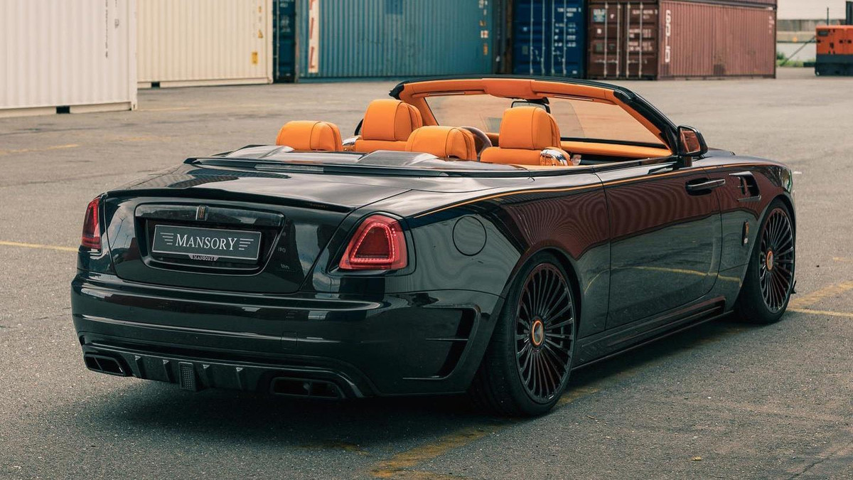 Bộ bodykit thân rộng kèm theo cánh gió trước mang đến cho Dawn phần đầu xe dữ dằn hơn xe nguyên bản. Bộ vành đa chấu với vòng cam ở trung tâm là điểm nhấn ở ngoại thất. Tương tự Cullinan, Mansory tập trung vào nội thất với tông màu cam chủ đạo.