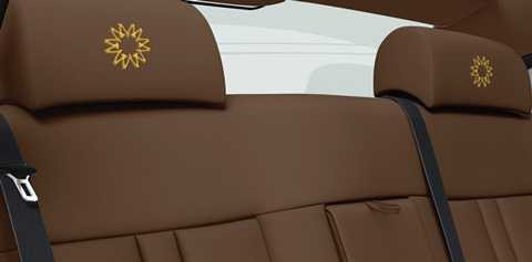 Logo này cũng được thêu tay trên tựa đầu của tất cả các ghế trong xe và được đưa vào đồng hồ chỉ giờ một cách khéo léo và đầy cảm xúc.