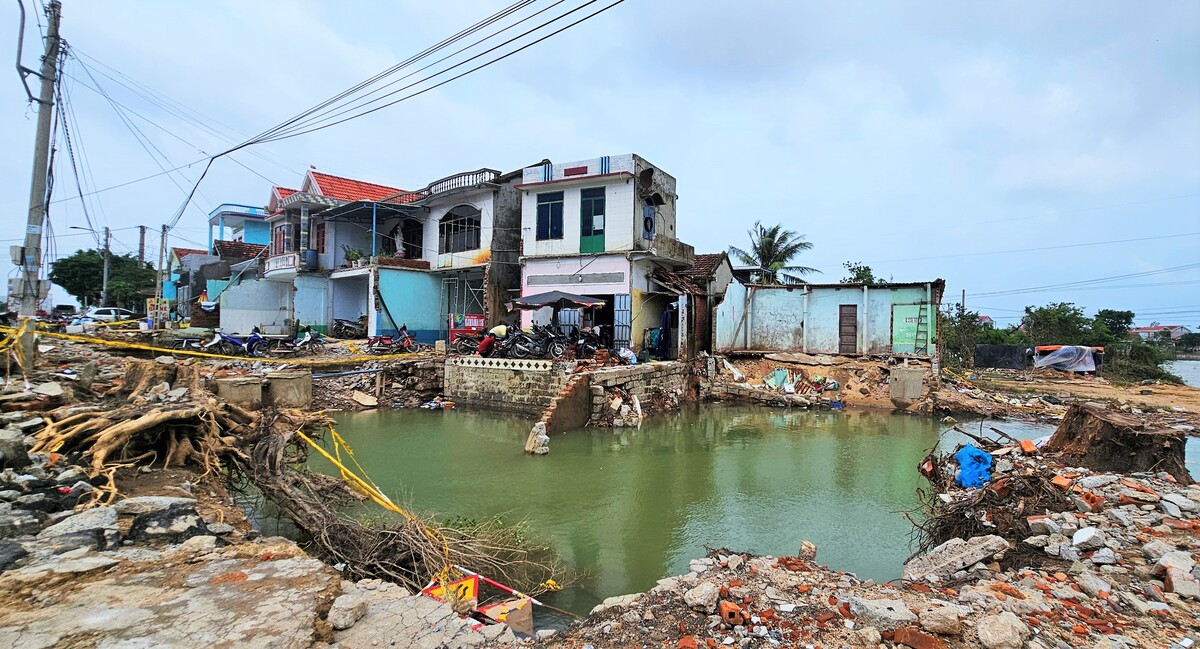 Cơn lũ đi qua hiện ra hoang tàn với những mái nhà đổ sập và nỗi đau xót hằn trên gương mặt người dân.