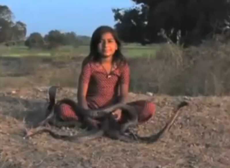 Rợn người clip cô bé 8 tuổi chơi với 6 con rắn hổ mang