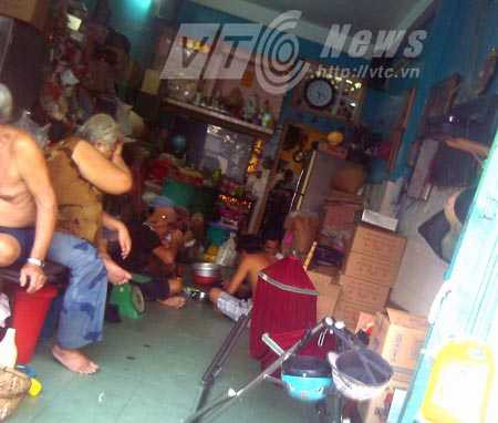 Các loại rổ rá bằng tre, túi ni long treo lủng lẳng trên cửa sắt, nhiều vật dụng treo móc vách tường, giày dép để đầy trước ngạch cửa, nước bẩn vấy vương vãi trên nền nhà... Kẻ ngồi ghế, người ngồi bệt dưới đất ăn uống, nói cười rôm rả.