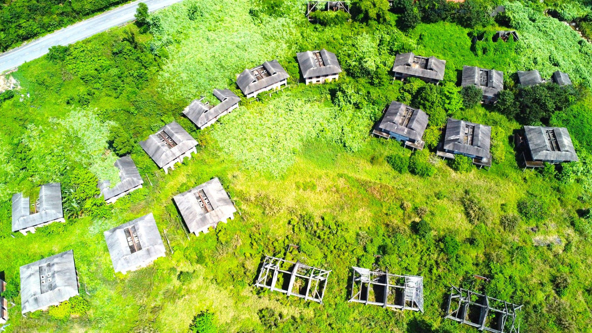 Hơn 20 căn biệt thự trên diện tích 14ha thuộc khu vực bãi Trẹm, bán đảo Sơn Trà, phường Thọ Quang, quận Sơn Trà, Đà Nẵng được chủ đầu tư xây dựng cơ bản hoàn thành phần thô nhưng đành tạm dừng và bỏ hoang nhiều năm qua khi Chính phủ thanh tra toàn diện bán đảo Sơn Trà vào năm 2017, công bố sai phạm năm 2019.