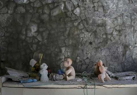 | Hình ảnh con búp bê sót nằm trơ trọi trên chiếc giường cũ kỹ cho thấy nỗi ám ảnh tại Chernobyl vẫn hiện hữu. |