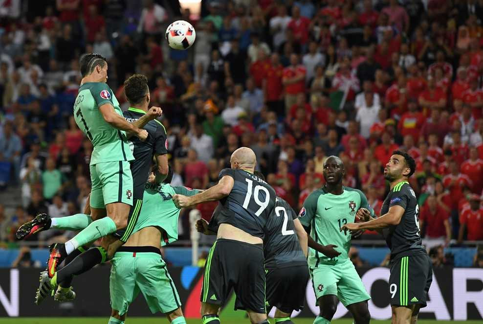 Ronaldo bật cao hơn tất cả, dứt điểm hạ gục thủ thành Hennessey. Ronaldo có bàn thắng thứ 9 ở các kỳ Euro, ngang với Michel Platini.