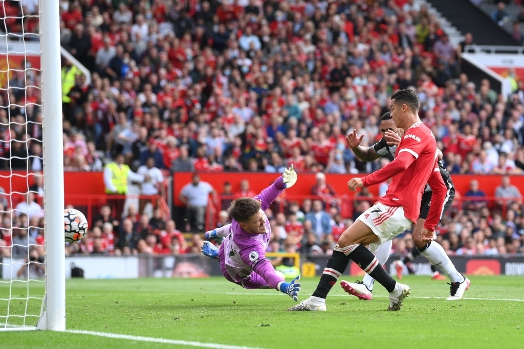 Ở phút bù giờ cuối cùng của hiệp một trận đấu trên sân Old Trafford, siêu sao người Bồ Đào Nha sút tung lưới Newcastle theo phong cách quen thuộc. Thủ môn đội khách mắc sai lầm khi không bắt dính cú sút của Mason Greenwood và Ronaldo lập tức chớp thời cơ đệm bóng cận thành.