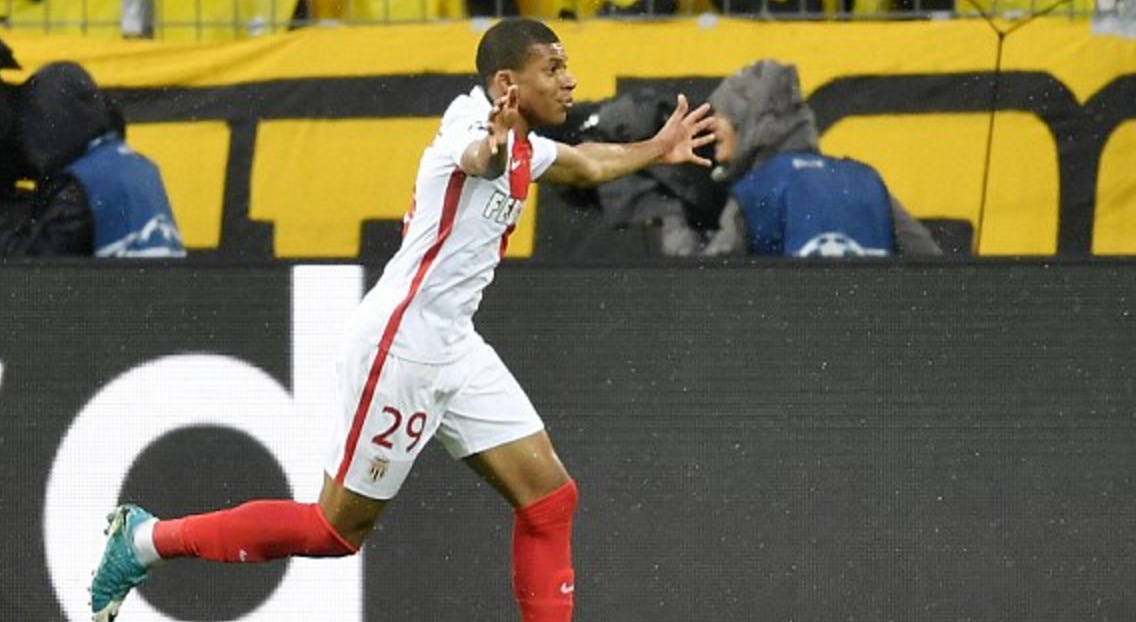 Mbappe ăn mừng bàn thắng nâng tỷ số lên 3-1 cho Monaco.