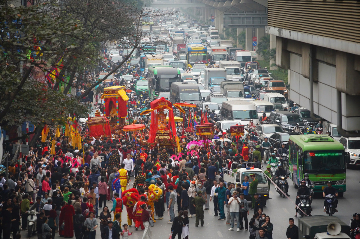 "Dù bị tắc đường vì đoàn rước kiệu, nhưng tôi không cảm thấy mệt mỏi như mọi hôm. Đây cũng là dịp hiếm hoi tôi và mọi người được hòa mình vào không khí lễ hội truyền thống ở Hà Nội", anh Hoàng Văn Minh (ở quận Hà Đông) nói.