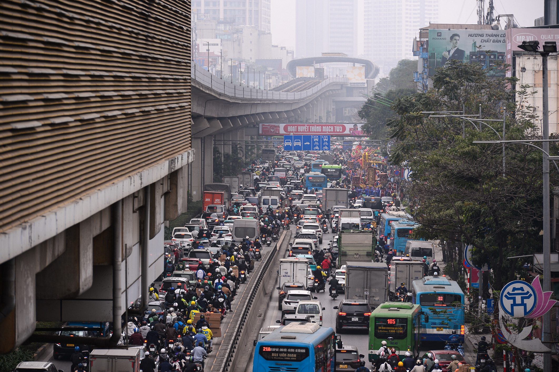 Chỉ vài phút sau khi kiệu xuất hiện, nút giao này rơi vào tình trạng ùn tắc nghiêm trọng.