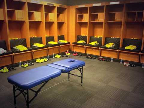 06h11: Phòng thay đồ của Liverpool. Đội bóng thành phố cảng sẽ mặc bộ trang phục màu vàng ở trận này.
