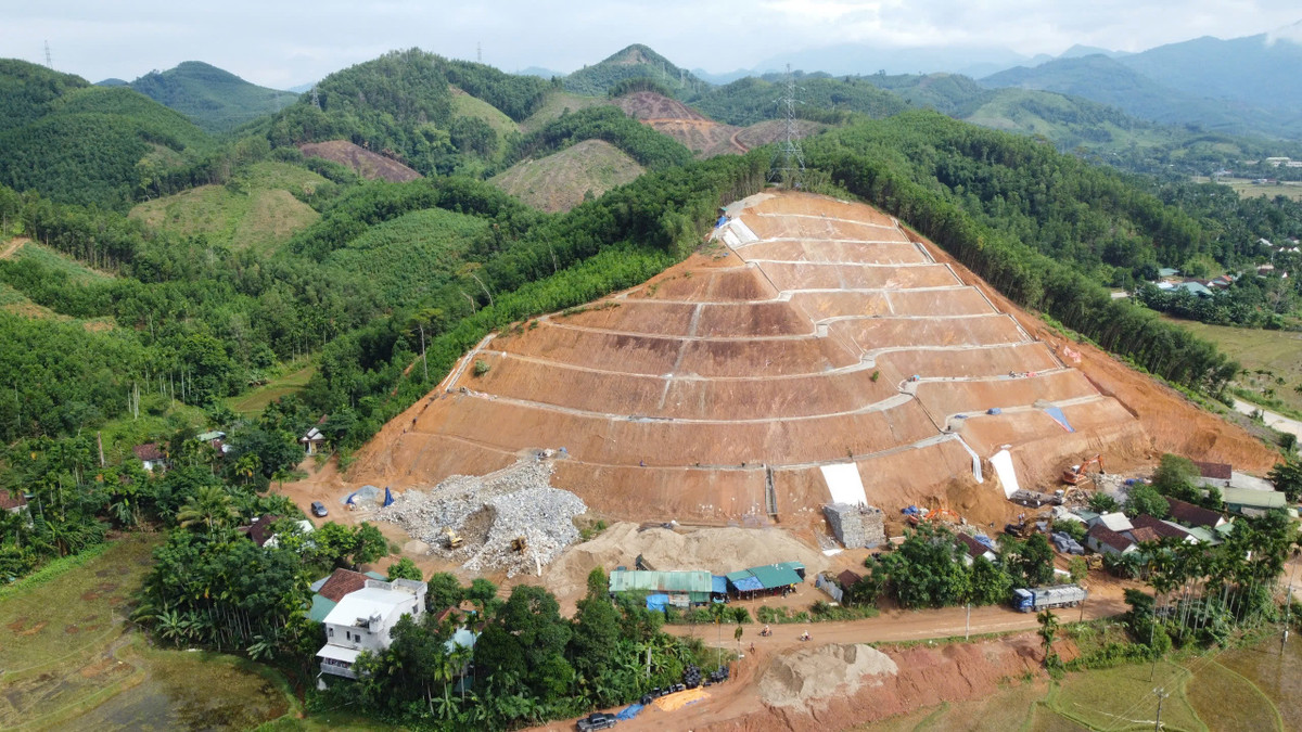 Dự án khởi công ngày 15/7, dự kiến hoàn thành trước ngày 31/10/2024. 3 tháng qua, đơn vị thi công đã triển khai bạt mái taluy giảm tải phía trên đỉnh đồi, xây tường chắn rọ đá dưới chân, làm rãnh thu nước…