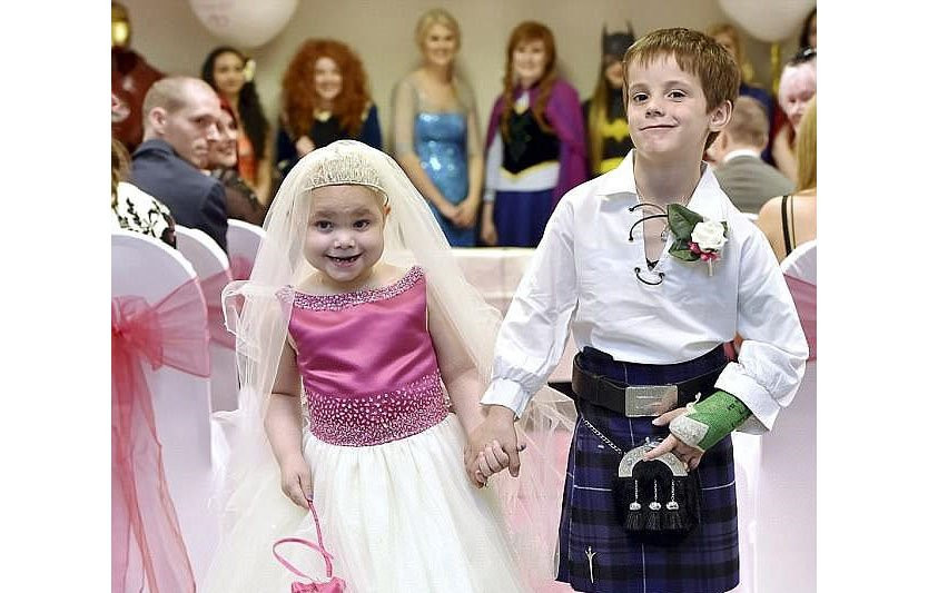 Khoảnh khắc bé gái 5 tuổi được anh trai Callum dắt tay vào lễ đường trên nền nhạc ca khúc When you wish upon a atar (nhạc phim hoạt hình Pinocchio) khiến nhiều người bật khóc vì thương cô bé.