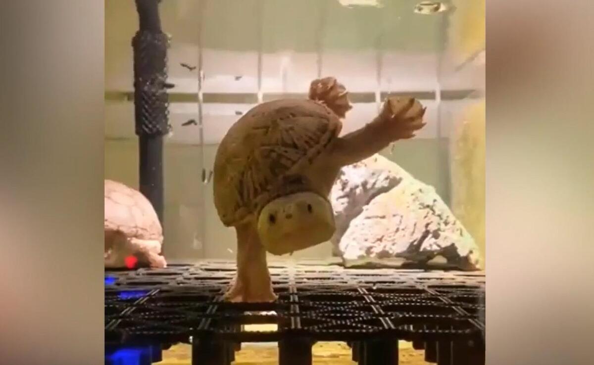 Rùa biễu diễn ‘trồng cây chuối’ trong bể nước