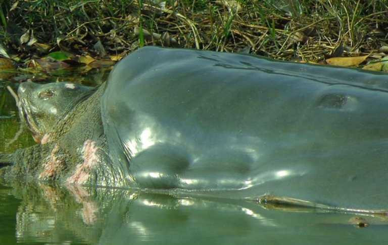 | 'Cụ' Rùa Hồ Gươm có nhiều vết thương trên cơ thể khi còn sống. |