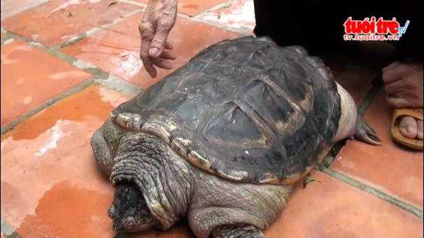 Bà chủ nuôi chú rùa xin giấu tên cho biết, trong một lần đi trên đường về, bà bắt gặp một con rùa nhỏ bằng cái chén và đem về nuôi. Rùa ăn cỏ, cá tạp và côn trùng nên rất dễ nuôi và hiền.Khoảng vài năm thì thấy rùa mọc đuôi có những gai sừng như đuôi cá sấu.