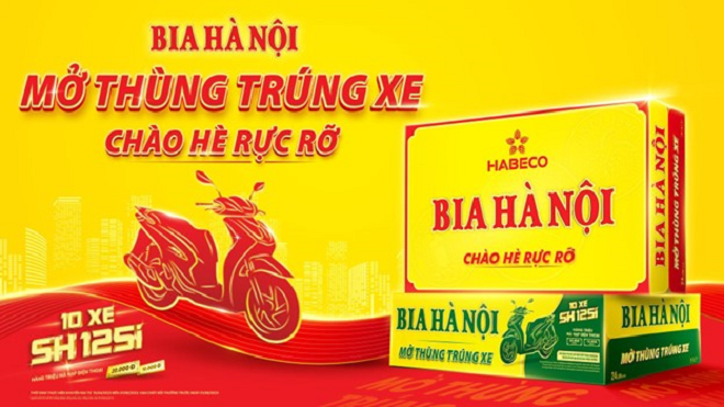 Theo đó, từ ngày 15/4 - 31/8/2023, khi mở thùng bia Hà Nội và tham gia CTKM “Mở thùng trúng xe - Chào hè rực rỡ", khách hàng có cơ hội trở thành chủ nhân của 10 xe SH 125i bản tiêu chuẩn và nhận ngay hàng triệu mã nạp tiền điện thoại. Đây cũng là dịp để Bia Hà Nội tri ân những khách hàng luôn tin tưởng và lựa chọn sử dụng Bia Hà Nội trong suốt thời gian qua.