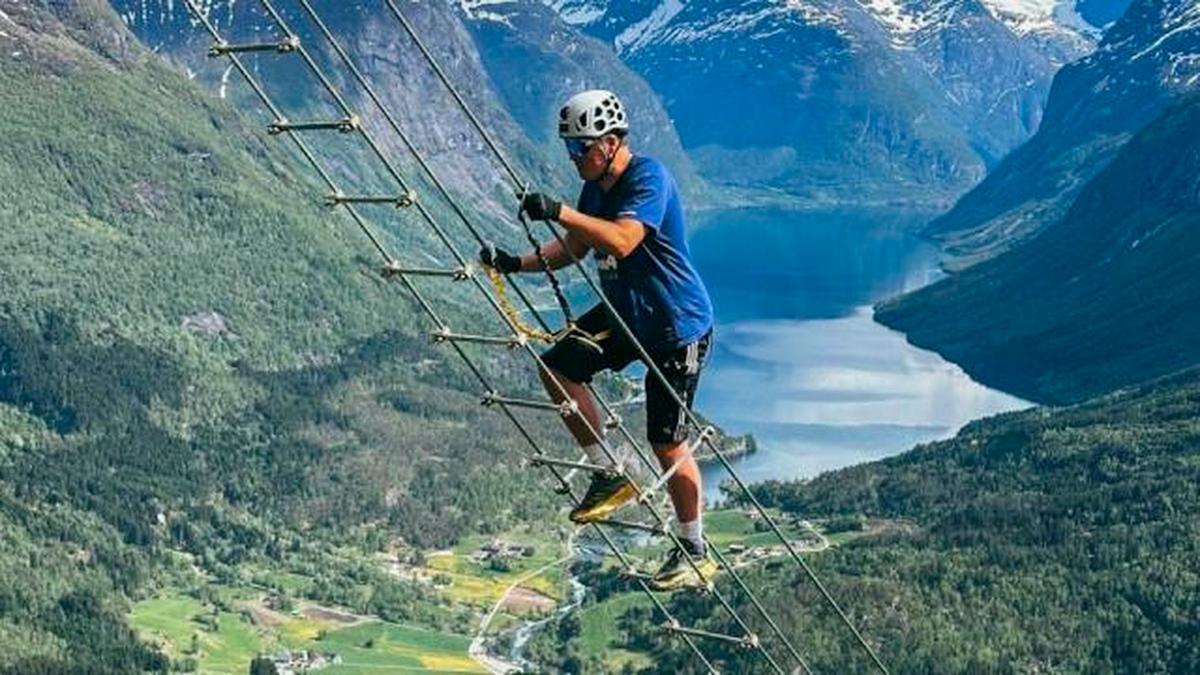 Leo thang dây lên núi ngắm cảnh ở ngôi làng Loen (Na Uy) được xem là một trải nghiệm đầy thú vị dành cho những người không sợ độ cao.