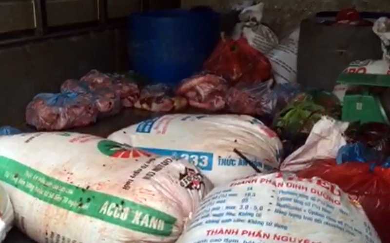 Qua kiểm tra, Đoàn đã phát hiện hơn 4 tạ thịt và xương động vật không rõ nguồn gốc, bốc mùi hôi thối và phát hiện thêm 1 can loại 10 lít đựng hóa chất dùng để biến thịt thối thối thành thịt tươi.