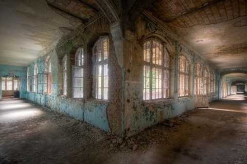 Với những hành lang trống trơn, trần nhà mục nát, nhiều mảnh vỡ vương vãi khắp nơi, bất cứ ai nhìn vào cũng thấy được hình ảnh quá khứ đang lụi tàn trong nơi từng là bệnh viện của quân đội Đức Quốc Xã.