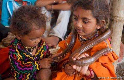 Những hình ảnh ấn tượng trẻ em Ấn Độ chơi với rắn: