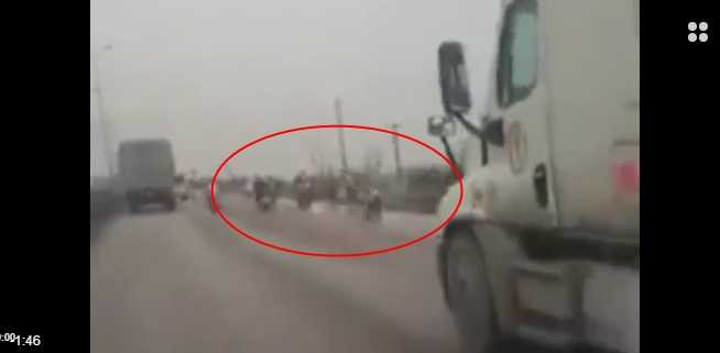 | Xe máy lũ lượt đi ngược chiều trên QL 5 (ảnh chụp màn hình video) |