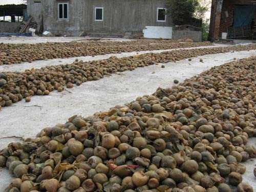 Họ vớt những đống quả dưới hố đem đi phơi mà không hề có động tác vệ sinh hố đất hay lớp nilông trải đựng sấu, quất, chanh ủ mà chỉ phơi khô qua loa, để vài hôm lại cho ủ mẻ khác.