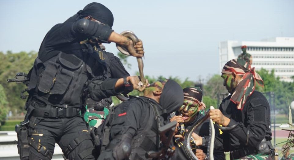 Rùng mình xem lính Indonesia cắt đầu, uống máu rắn hổ mang