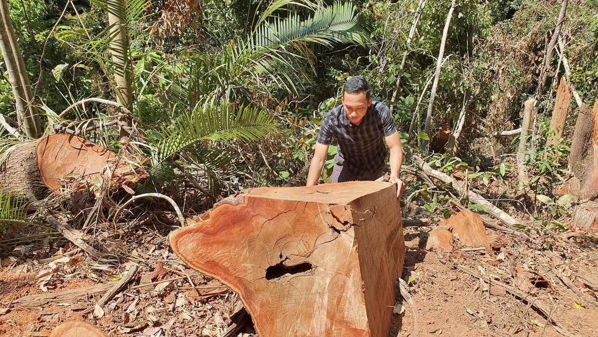 Gỗ bị đốn hạ nằm la liệt tại hiện trường.