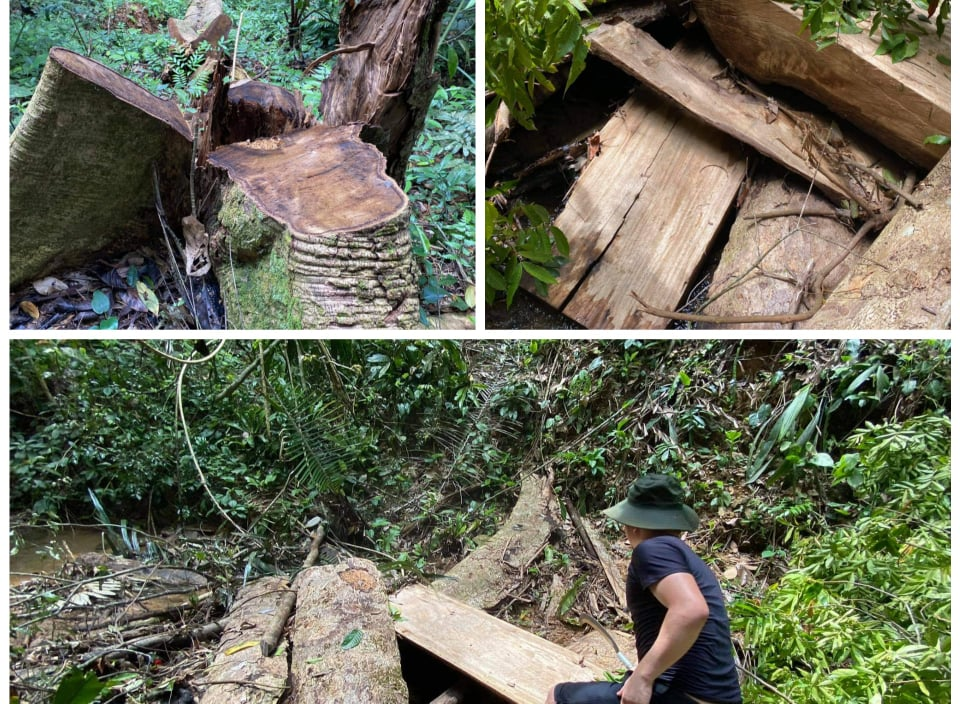 Ngoài ra, lực lượng kiểm lâm còn phát hiện rải rác tại một số điểm tại rừng có 26 phách gỗ chò, trám các loại khối lượng 1,834m3 (đã được lập biên bản). Các gốc cây bị chặt hạ là quế rừng, trám chũa, chò, mỡ, dẻ… thuộc nhóm 6,7… Có 1 lán cũ đã tiêu hủy và tại một số vị trí có giá để tời cũ.
