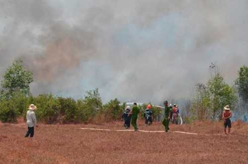Tuy nhiên, do thời tiết nắng nóng gay gắt, nguồn nước cách xa nên công tác chữa cháy gặp rất nhiều khó khăn về thời gian và công sức.