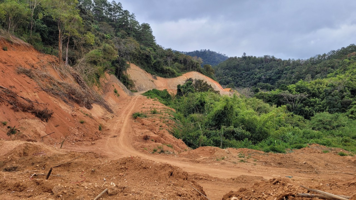 Gần nửa quả đồi bị bạt để làm đường, trong đó có nhiều cây rừng.