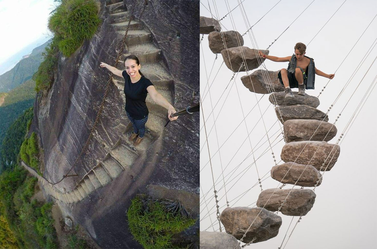 Hãy thầm cầu mong đừng có cơn gió lớn nào thổi qua khi bước trên chiếc thang này.