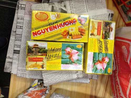 | Bánh đậu xanh Tiến gửi làm quà cho từng cầu thủ Arsenal |