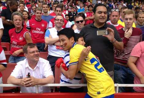 | Running Man Vũ Xuân Tiến để lại ấn tượng sâu sắc với các fan Pháo thủ tại London. |