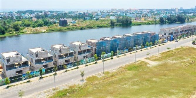 Dãy căn biệt thự của Đất Xanh Miền Trung bị thu hồi giấy phép. (Ảnh: Gia Trần)