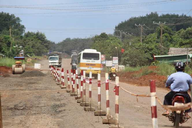 | Một đoạn tuyến quốc lộ 14 qua Bình Phước chưa được thi công xong. ẢNH: BÁ SƠN |