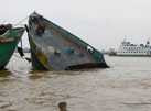 | Sà lan chở trên 500 tấn cát chìm dưới sông Hậu ở An Giang. Ảnh: Ái Nam |