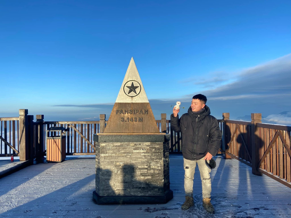 Cuối tháng 12/2022, mưa tuyết rơi dày, bao phủ cả một vùng không gian rộng lớn trên đỉnh Fansipan, khiến du khách vô cùng thích thú.