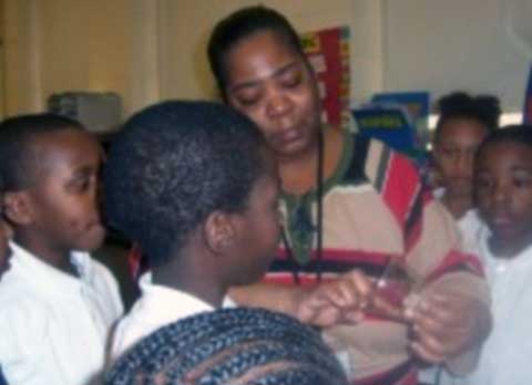 | Gatewood trong giờ học cùng các học sinhh trước khi bị sa thải |