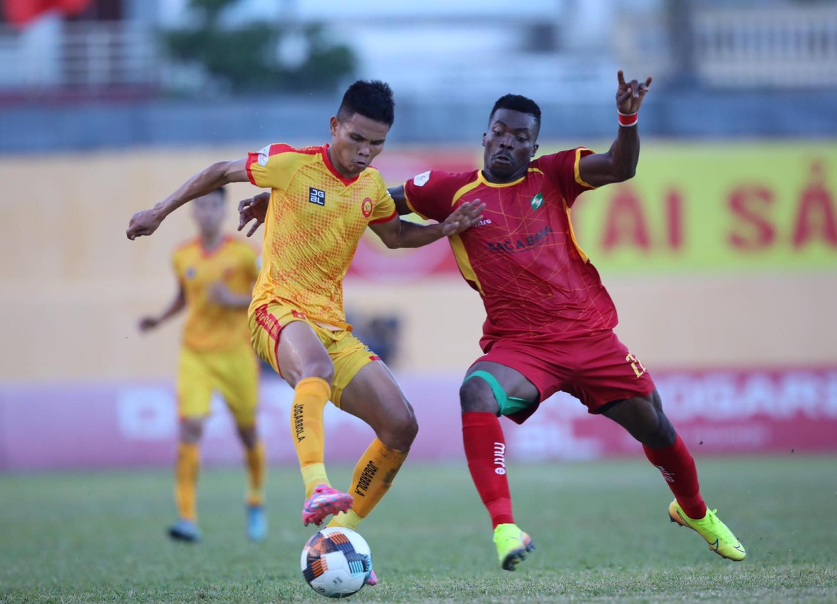 Thanh Hóa (áo vàng) đá bế tắc.