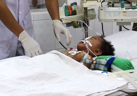 Bác sỹ chữa trị trực tiếp cho bé Mai cho hay, sau nhiều ngày điều trị, hiện tại bé vẫn đang trong tình trạng nguy kịch.
