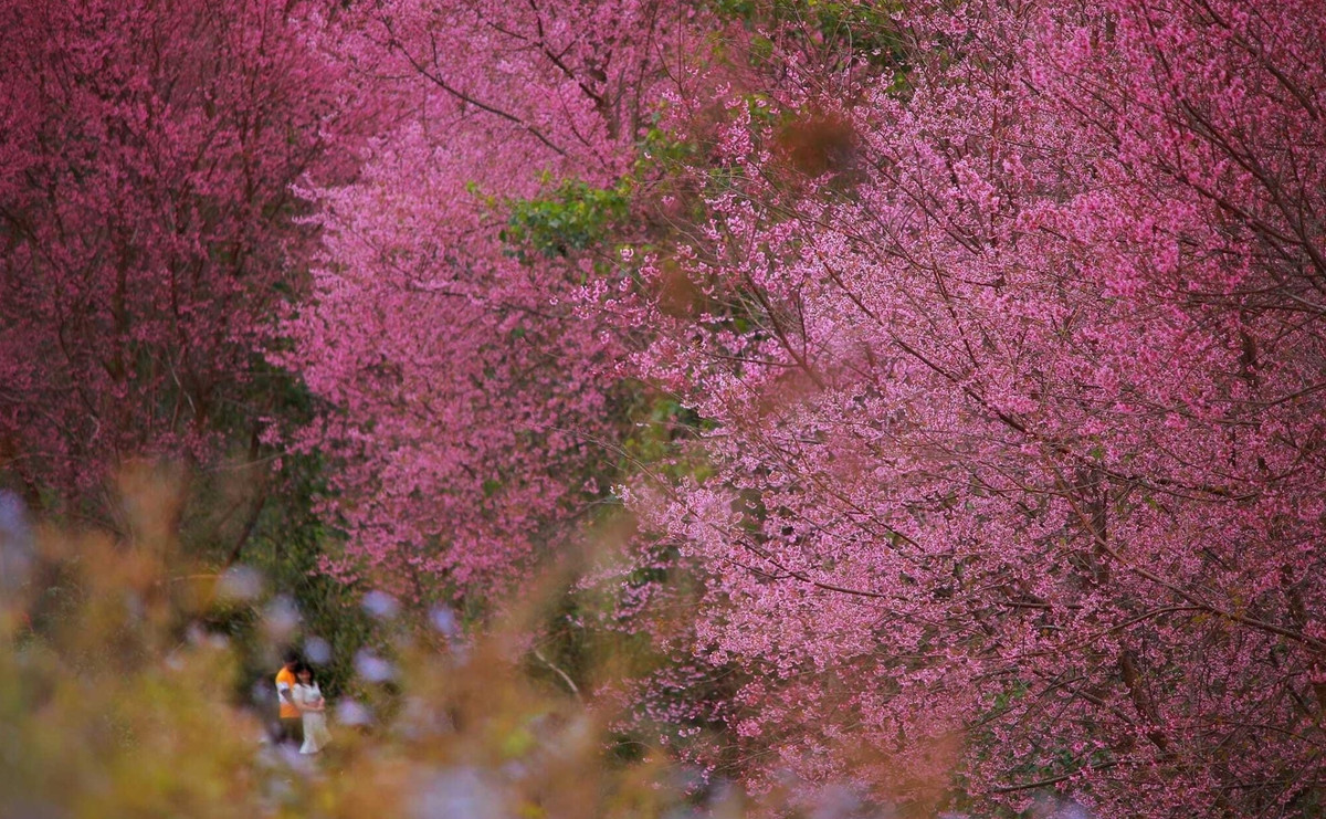 Mai anh đào cũng đang bung nở rực rỡ trên khắp các triền đồi cho đến những cung đường nội ô Đà Lạt khiến du khách thập phương ngất ngây.
