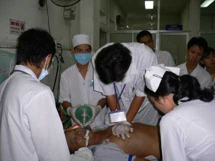 Các bác sỹ đã phải đặt nội khí quản và hút xi măng ra ngoài. Các bác sỹ cho biết nếu không được đem đi cấp cứu kịp thời thì anh B sẽ bị suy hô hấp dẫn đến tử vong.