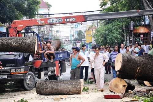 | Cây cổ thụ trên đường Hòa Hưng cũng gãy đổ ngang đường |